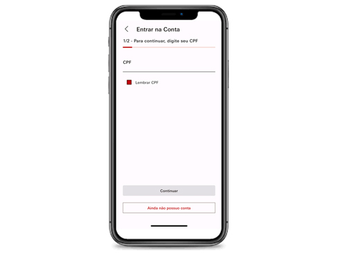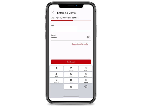 A jornada de primeiro acesso é totalmente digital e permite o cadastro de biometria facial ou digital para fácil acesso ao App.